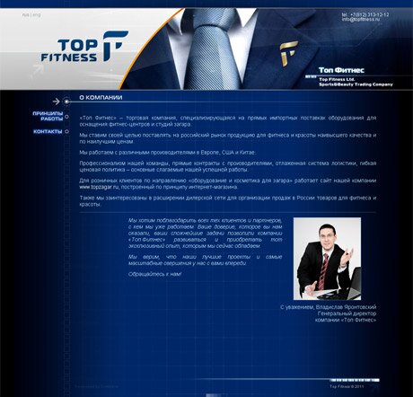 Создание сайта компании TopFitness. Верстка макетов дизайна, интеграция с Системой управления сайтом.